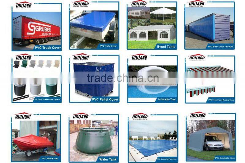 The main product is PVC tarpaulin, and it is widely used as truck/trailer/container cover, tents, pallet cover,strip garden fence, awnings, inflatable products, adumbral materials for building facility and house.