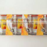 Our glass products include candle glass jar,glass tumbler,beer glass,glass mug,shot glass,glass bowl,glass plate,ashtray,glass vases,etc.And we have a great prefessional team for glassware decoration that mainly engages in logo imprinting,Frosting,Color Spray,Laser Etching,Sandblasting, Hand painting,Gold outlining,Electroplating,etc.