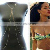 Fashion Rihanna Sexy Body Chain Bikini Chain 28K Gold Cross Tassel Chain Beach Body Jewelry
