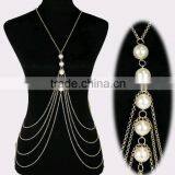 Bikini Beach Crossover Harness Necklace Waist Belt Belly Pearl Sex Body Chain Jewelry