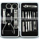2015 High Quality 12 Pcs Portable Stainless Steel Nail Manicure Set With Pu Box