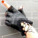 Women Black Lace Gloves Half Finger Soft Genuine Sheepskin Leather Gloves Ladies Dance Costume Sexy Driving Gloves