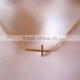 Gold Sideways Cross Charm Necklace Faith Religious Celebrity Inspired Bridal Jewelry Wedding