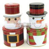 Christmas Santa Claus Snowman Shaped Tin Can With Three Layers