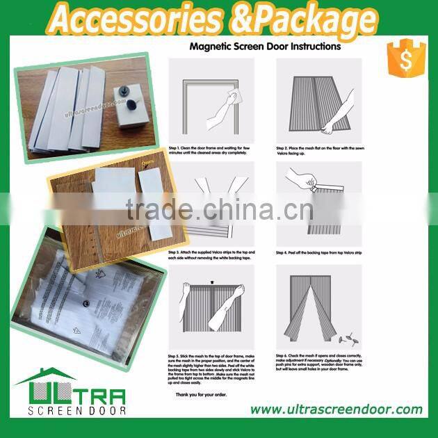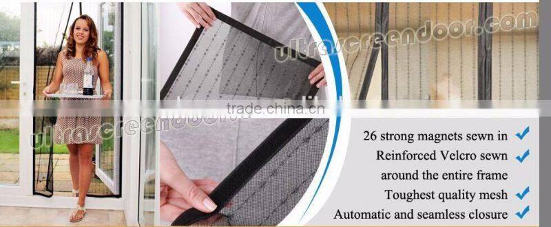 We improved magic mesh curtain by use more sticky Velcro tape, strong magnetic strip and sewn the Velcro to the edge seam. In February 2015, we launched this new brand name Ultra Screen Door, focus on DIY window screen.