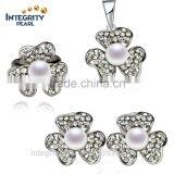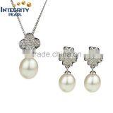Fashion Elegant Nice Design Natural Pearls 925 Sterling Silver Pearl Set For Women Gift