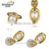 Fashion Cross Pearl Jewelry Set Golden Color 8mm Button Pearl Elegant Pearl Set Design