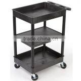 40" Plastic Utility Cart, 2 Trays & 1 Shelf - Black(UC-B-166)