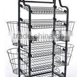 52"w Bakery Display Rack w/ Wheels, 6 Shelves, 4 Side Baskets & Header - Black