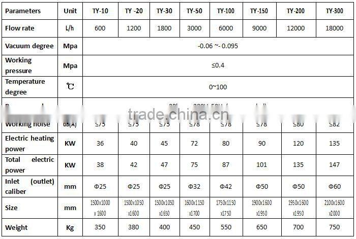 Drain up vacuum at 59~71m3/h pumping speed, create a tight vacuum state for oil purification quickly and have a 10 years guaranteed service life.