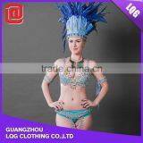 Unique Design Sexy Blue Beaded Rhinestone Feather Showgirl Clothing Wholesale Carnival Costume