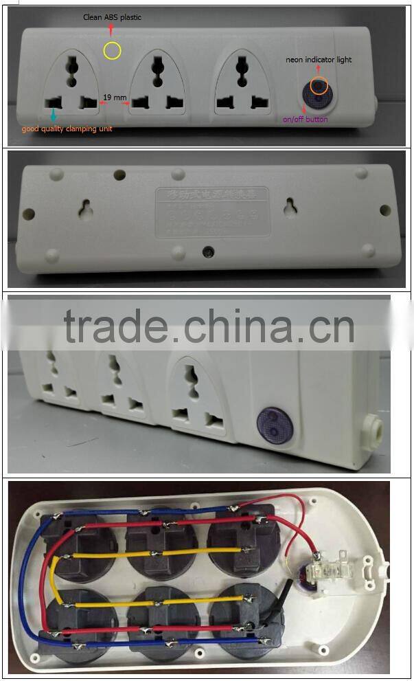 Indoor Low Peice 4 Pole Universal Power Strip With Cable