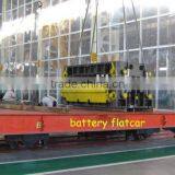 1.KPX railway battery flat car is powered by the storage battery. It is a kind of transport vehicles indoor.The batteries supply electricity to the DC motor through the electrical control system. Then the reducer drives the wheels of the flat carts start, stop, go forward and backward, and the speed can be adjusted at the same time. The professional charger can give electricity to the battery when the battery is no power.