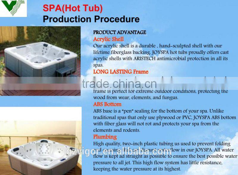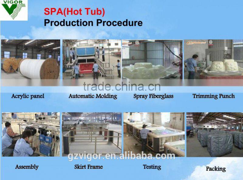 Our company, Guangzhou Vigor Health Equipment Co., Ltd is professional in spa, sauna, swimming pool equipment. We have been in this area for more than 15 years and our own factory is located in Qingyuan City. Welcome to visit our factory. We are sure to offer you a competitive price with the best quality in this market.