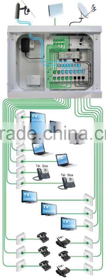 Multimedia information box is a new smart box integrated of intelligent line system .It is widely used in connection and allocation of line for home broadband,office broadband,hotel . Broadband , telephone , computer, television, audio,monitor,switch,power etc.We have more than 35 modules for choices.