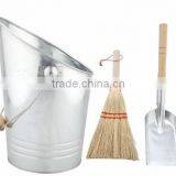 Fireplace Metal Ash/Coal Bucket With Shovel and Besom