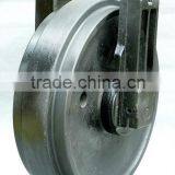 We produce high performance and reliability Excavator front idler group and Bulldozer front idler wheel group,such as for caterpillar,hitachi,daewoo,kobelco,sumitomo,hyundai,samsung,volvo,mitubishi.