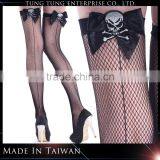 Taiwan Factory Skull With Bows Backseam Fishnet Stockings