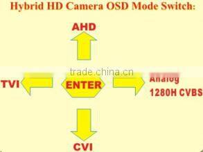 Switch by OSD Menu, up to AHD mode, down to CVI mode, left to TVI mode, right to CVBS mode;