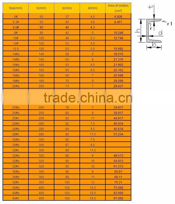 Hot Rolled Grade Q235B U&C Type Channel Steel