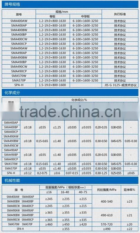 Home > Products > Steel Plate&Coil > SMA400AW Weathering Steel Plate Corten Steel for Railway Wsgons