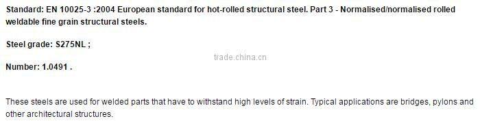 The most excellent quality, the most preferential price, create the best quality service Henan Hanou International Trading Co. Ltd. promises. If you are interested in EN 10025 S275NL steel, we can help you.