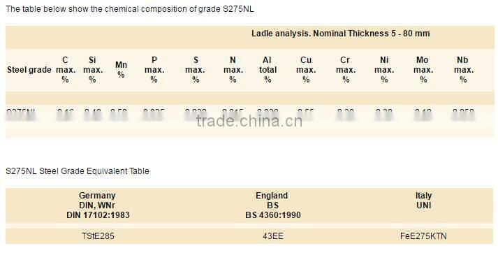 | Standard | AISI, ASTM, BS, DIN, GB, JIS | Grade | S275NL | |