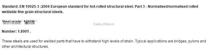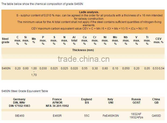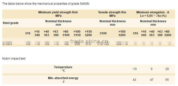 | Standard | AISI, ASTM, BS, DIN, GB, JIS | Grade | S460N | |