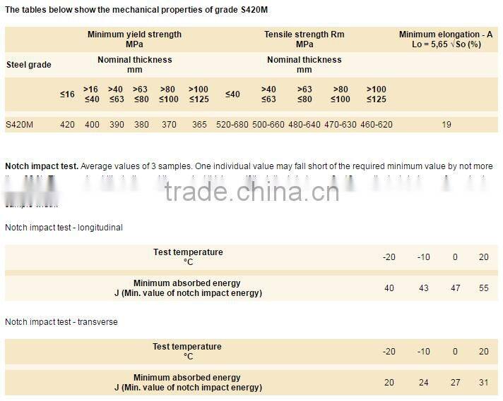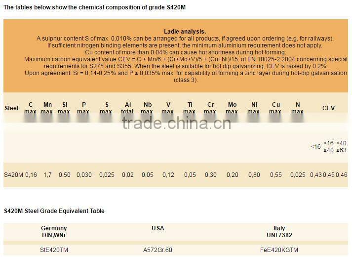 | Standard | AISI, ASTM, BS, DIN, GB, JIS | Grade | S420M | |