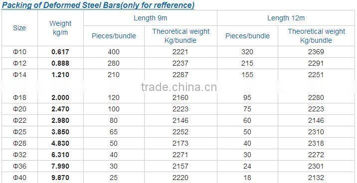Standard: GB 1499.2-2007 BS4449:1997 BS4449:2005 ASTM A615 KS D3504:2011 ASNZS4672-2001 MS·146:2014