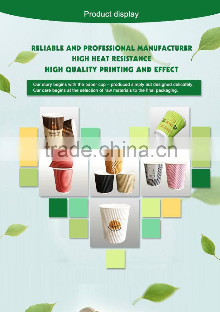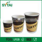 2016 High Quality Hot Sale Custom Printed Ripple Wall Paper Coffee Cups With Lid
