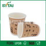 Disposable Custom Printed Ripple Wall Hot Coffee Kraft Paper Cup