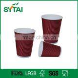Hot Drinking Ripple Wall Disposable Paper Coffee Cups With Lids