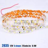 7.2w SMD 2835 S Shape Super Ultra Thin Led Strip