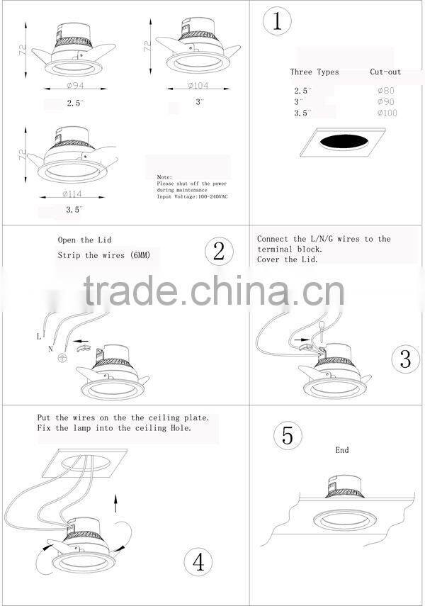 2014 New Products AC110V High Power 6w Ceiling Light Fittings Spotlight
