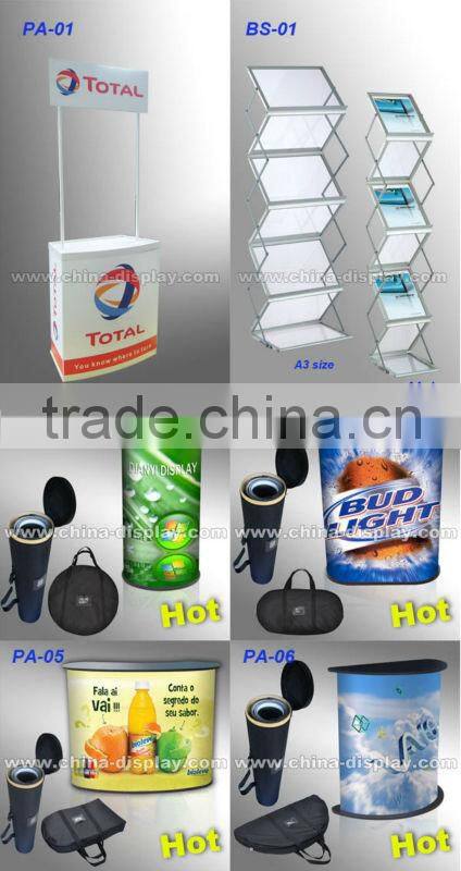 We specialize in producing many different kinds of display systems, such as LED ight box, Flag banner, Poster frame, Pop up display, Banner stand, Promotion table, Truss, Exhibition booths etc.