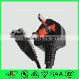 BSI Approval 3 Pin Plug UK BS 3 Pin Power Plug With Fuse and AC 2 Core Flat Electric Cable and C7 Plug