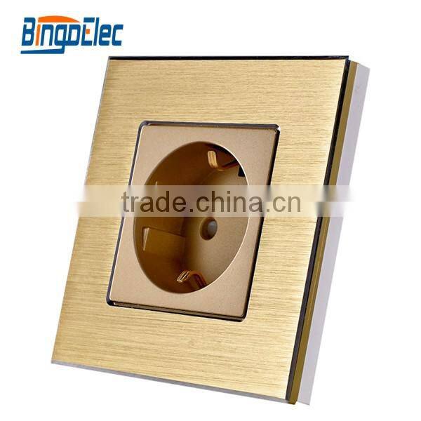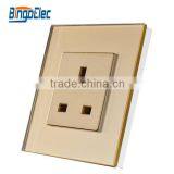 Euro Type Golden Glass Panel French Wall Socket 16A