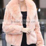 2015 Popular Style Rabbit Fur Coat With Racoon Fur Callor