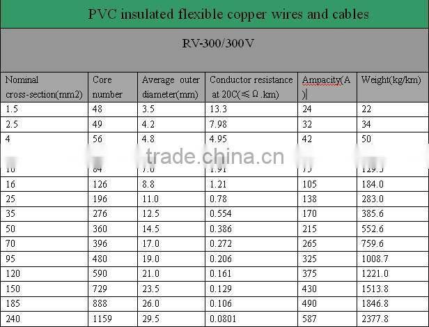 1. Range of application: Fit A. C rated voltage 300/300V. flexible cpper conductor pvc insulated cables .