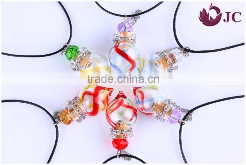 2016 New Coloured Glazed Essential Oil Necklace Mini Glass Bottle Pendant Necklace With Origin Cork Cover