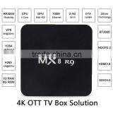 2016 Facory Supply MX8 R9 4K RK3229 1G+8G Quad Core Smart TV Box MX8 R9 4K in Unuiga Stock