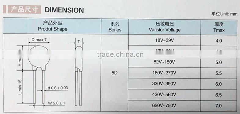 Electronic components- Voltage Dependent Resistor VDR varistor 7D361K