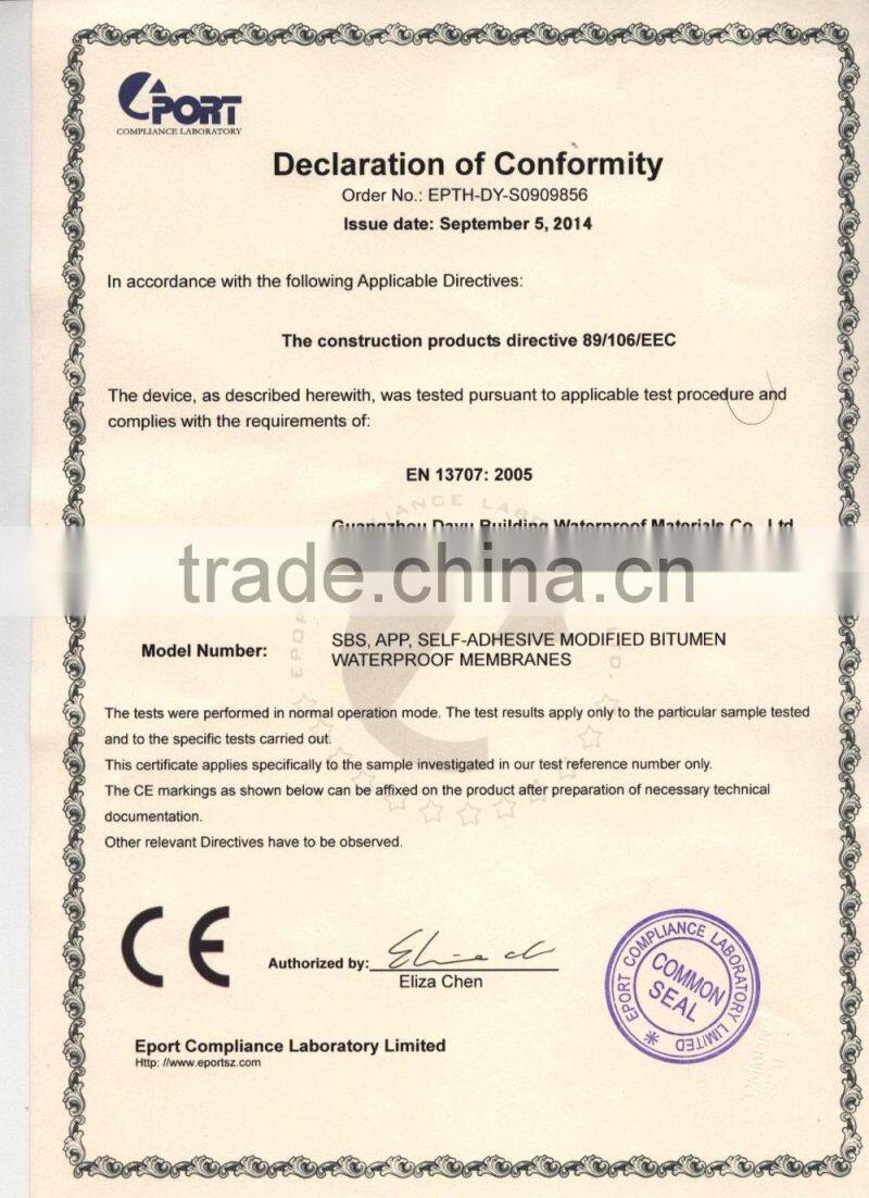 modified bituminous sheet materials(SBS/APP) with PE film(PE)  | 1m  | 10m  | 2mm  | 32kg/roll  |