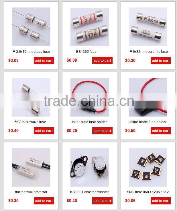 Main products include glass / ceramic tube fuses, thermal cutoffs, thermostats, automotive fuses /auto fuse, miniature fuses, SMD fuses, resettable fuses, fuse blocks, holders & clips.