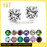 Cheap Wholesale 925 Sterling Silver Birthstone Crystal Ball Stud Earrings, Pure Silver Jewelry Flat Back Stud Earrings(AE-038)