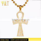 High Quality Custom Hip Hop Jewelry Micro Pave Setting Cross Pendant Gold Plated Diamond Necklace