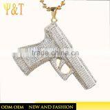 High Quality Fashion Silver Jewelry Stainless Steel Crystal Gun Pendant Wholesale