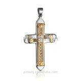 Jingli Jewelry Hot Sale 316L Stainless Steel Cross Pendant, Diamond-encrusted Two-tone Color Cross Pendant(GH-011)