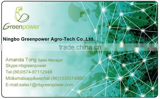 With years of export experience along with excellent quality, advanced services and competitive prices,our company Ningbo Greenpower Agro-Tech Co.,Ltd. has won numerous customers' trust and support.Main Mark:Southeast Asia,South America,Northern Europe Etc.Countries such as Japan,Thailand,Canada,Chile,France and other places.We hope to establish long - term business relationship.And to Create bright future together.